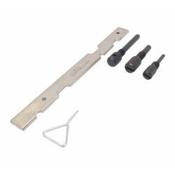 Il kit comprende uno strumento di bloccaggio dell'albero a camme e dell'albero motore per motori a cinghia o a catena con una capacità da 1,25 a 2,3 litri.