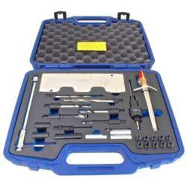 La profondità e l'angolo di foratura esatti vengono raggiunti utilizzando bussole guida. ADATTO A: - Filettatura candelette M10 x 1 su ad esempio WV Passat, Audi V6 TDI con motori da 2,5 l / 2,7 l / 3,0 l.